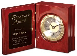 Rosewood Piano Finish Desk Clock on Base with 2 Pens